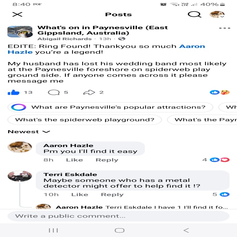 MICHAEL OLIVER from LOST JEWELLERY RECOVERY Metal Detecting Services 0434 985 992 has been flat out metal detecting all over Sydney returning lost treasures to owners from Wollongong to the Central Coast and everywhere in between. From Christmas eve performing many recoveries to Christmas day I was Diving the Parramatta River for a Lost iPhone 16 pro, Underwater metal detecting Manly Beach for a lost wedding ring found within the hour, 2 rings on Coogee beach Found in 5 minutes, 1 very tricky gold chain on Bondi Beach I had to dig into my metal detectors settings as this chain was buried deeper in the soft sand to find this little bugger. Christmas Eve I get a call from the owner Felix who lost his Grand mothers 80yr old silver chain at Neilsen Park while swimming the day before. Felix feared he lost his chain the day before that it will be gone forever. I explained there is that possibility however in my years of doing this in this particular location at the water depth you lost it I feel more than confident your chain is here and still within metal detection range. I meet Felix the first thing on Christmas Eve morning, all geared up with my metal detector I hit the water. 10 minutes into the search I dig a few pull tabs and a 10c coin, the wakes from the boat traffic start to concern me as it creates a shore break with a lot of sand movement. Roughly 20 minutes into the search I get a Great T.ID reading on my XP Deus ll, its 45+ a bit low for a silver ring however in the range of a silver chain that I am looking for. The first dig I missed it, it's just a bit deeper in the sand on the second scoop BINGO I see this beautiful glimmer of a silver chain, I reach down into the scoop as the sand falls through the holes exposing the whole chain. Picking up the chain I raise it from the water Felix the owner on shore see's his lost chain in my hand and he was instantly in shock thinking he will cut his loss and the chain is gone forever. I run up to Felix and ask does this chain look familiar mate? Felix replied you legend we thought no way its gone forever how did you find it so fast!! this is what I do and to be honest you Felix put me in the right search area is the reason you still have the memories of your grandmother with you. Thank you Michael, you are most welcome Felix remember if you or your friends or family ever lose anything I'm just a call away, on land or underwater I can find it mate.