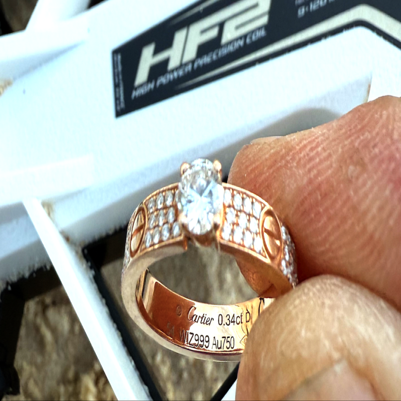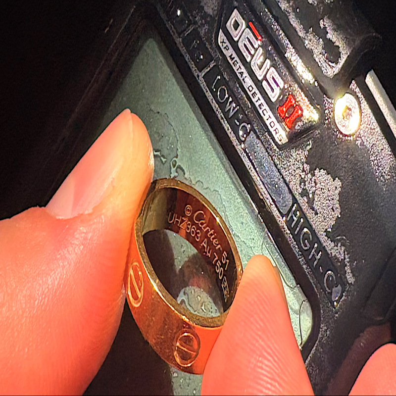 20 minutes later I get a great T.ID reading on my metal detector, this could be the ring. Now I face the challenge of digging the ring is rough surf, as the waves hit me they move me away from the ring, This is really frustrating as I don't know if this is the lost ring or not. 10 minutes goes by very slow and I catch a break between waves, I make my move to dig the target and BINGO we are on the GOLD. I quickly grabbed the ring slipped it on my finger before the next wave hits me. I jump out of the surf and scream out to the owner, I GOT HER MATE. He was so relieved to have his father ring back, Michael I can't thank you enough mate. This ring means the world to me and it will be passed down to my children and there's, you are most welcome mate it was great to meet you and really happy I could get your fathers ring back to you.