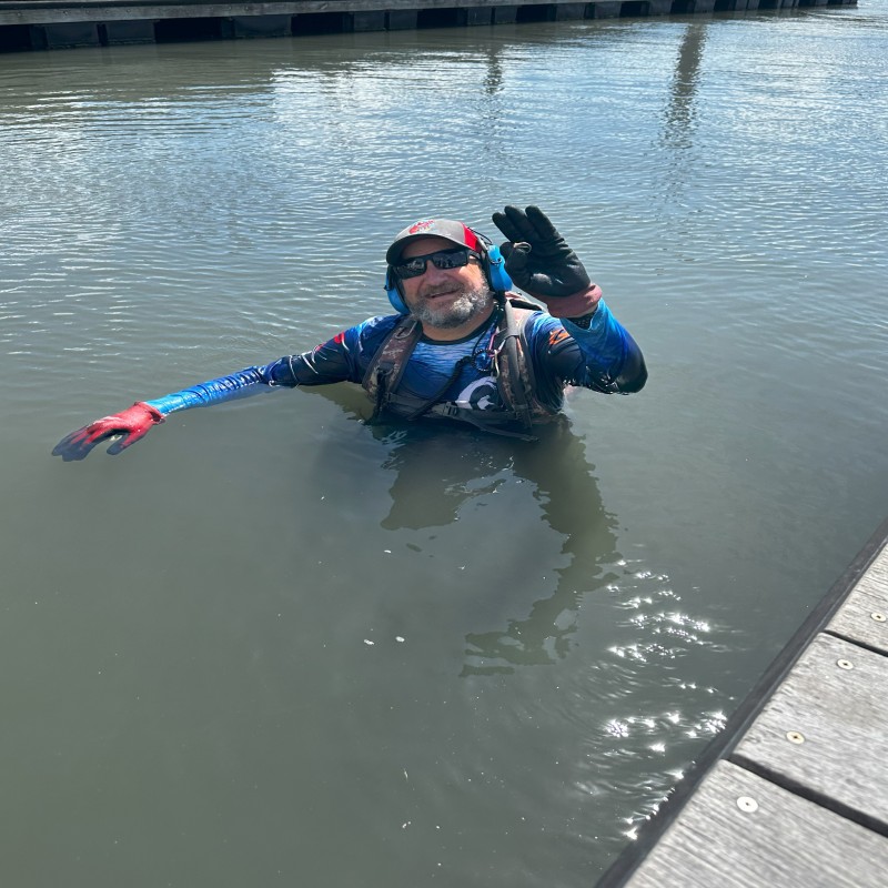 Jasmine & Bella were attending a wedding for some work friends and afterwards decided to jump off of a boat dock into the saltwater inlet. Jasmine's engagement ring that belonged to Bella's grandmother, slipped off as she was pulling herself up on the dock. I arrived then next day to hunt the lower tide and after checking various areas, it was determined the ring fell in the water on the opposite side of the boat dock. Once I made my way through the soft stinking muddy bottom the other side, my XP Deus II sounded off very loudly. Seconds later, I pulled Jasmine's ring from the water.